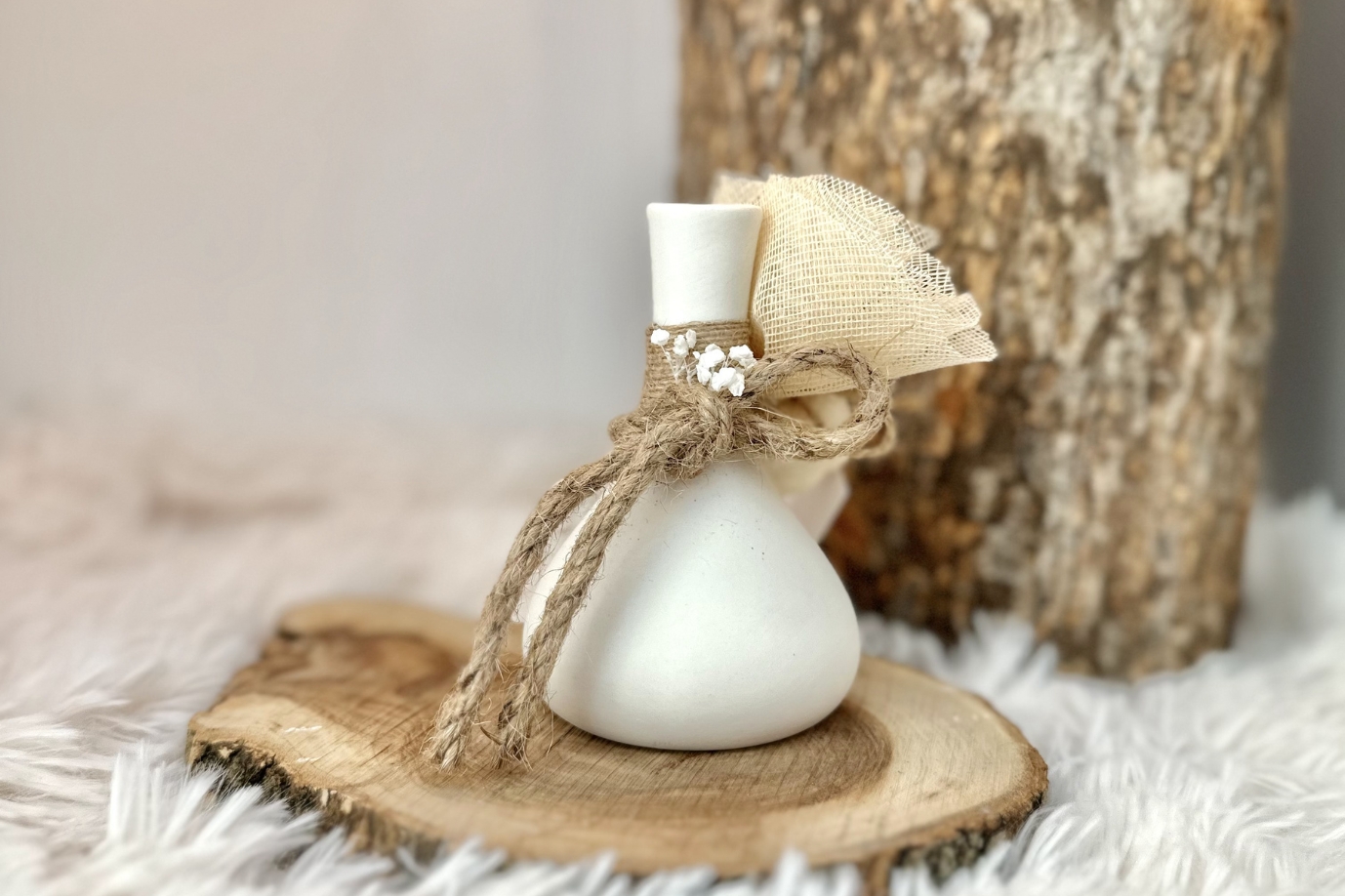Μπομπονιέρα γάμου κεραμικο βαζάκι με γυψοφύλλη.